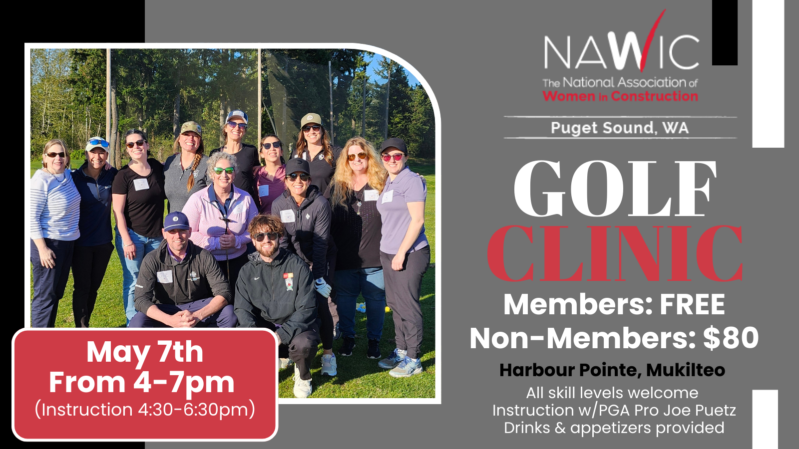 Harbour Pointe Golf Club 11817 Harbour Pointe Blvd, Mukilteo, WashingtonJoin us for NAWIC Puget Sound’s Golf Club! We are a group of women of all skill levels who are learning the game, love to play, and enjoy the camaraderie and challenge that comes along with golf. Overall, playing golf provides physical and mental benefits, social opportunities, and a chance to enjoy the outdoors. Clinics […]